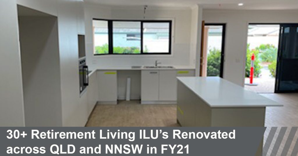- 30+ Retirement Living Independent Living Units Renovated across QLD and NNSW in FY21
